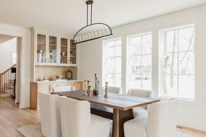 The kitchen and dining spaces are filled with thoughtful touches and modern conveniences at the center of the home. We began with a vision of family gatherings
